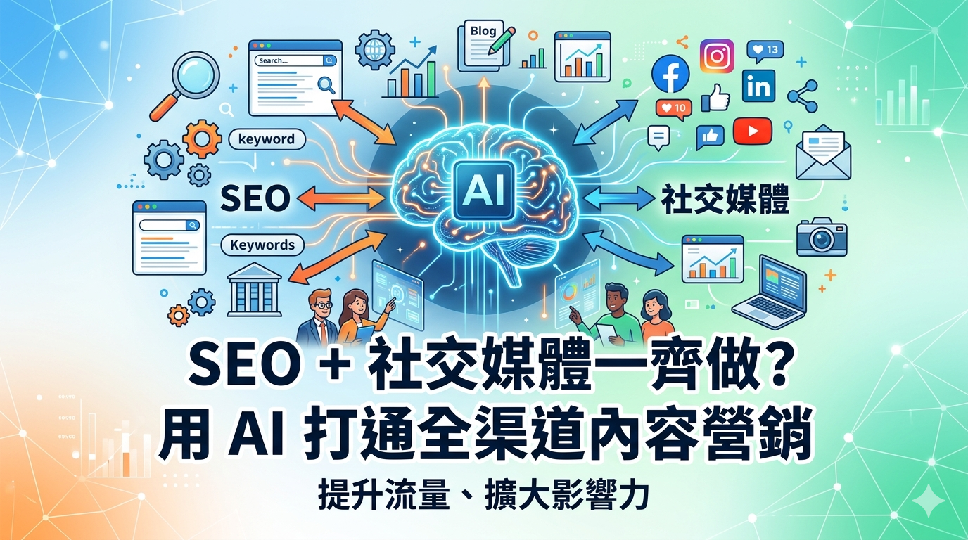 很多中小企做 SEO 嘅時候,只懂更新網站,做社交媒體又只係「碰運氣」出貼,令資源同訊息都好混亂。用 AI 打通全渠道內容營銷,可以由同一篇 SEO 文章自動生成多條 FB / IG 貼文,由同一系統排程出貼,令你既保住網頁排名,又提升社交平台互動率與自然流量。